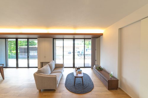 大きな窓からたっぷりと自然光を取り込むことで、明るく開放的な住まいを演出します。